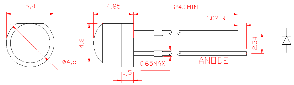 2. 별도로 명시하지 않는 한 공차는 ±0.25mm(0.01˝)입니다. 광도 허용 오차는 ±10%입니다.