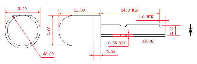2. 별도로 명시하지 않는 한 공차는 ±0.25mm(0.01˝)입니다. 광도 허용 오차는 ±10%입니다.