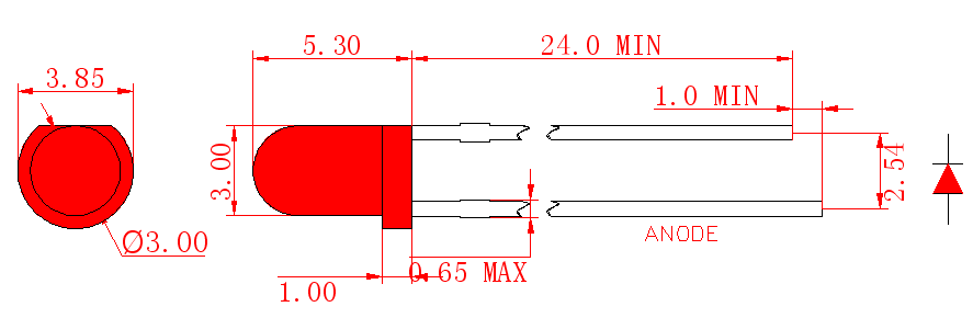3mm 레드 라운드 LED 램프(LL30SR1D50-60)