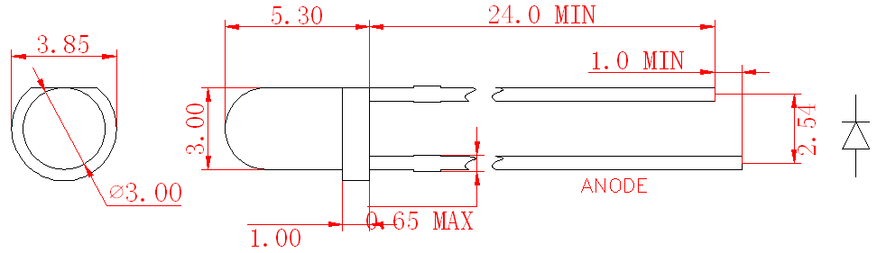 2. 별도로 명시하지 않는 한 공차는 ±0.25mm(0.01˝)입니다. 광도 허용 오차는 ±10%입니다.