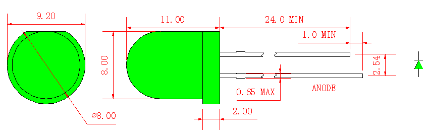 8mm 순수 녹색 원형 LED 램프(LL80PG2D60-2000)